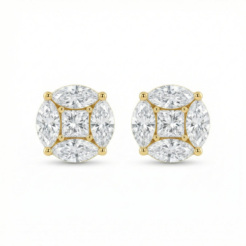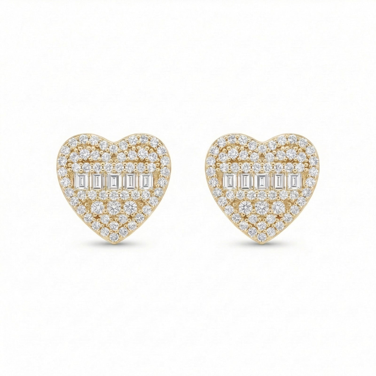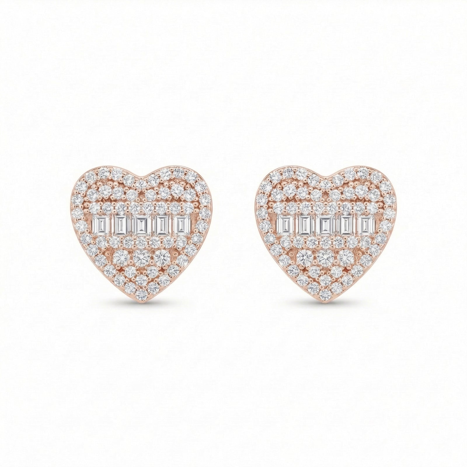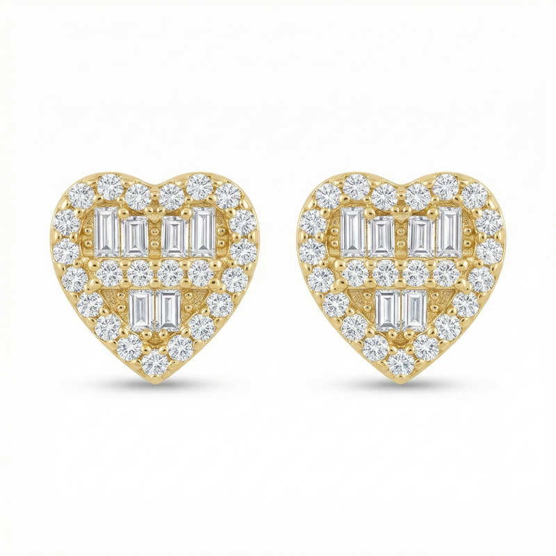 Diamond Heart Shaped Emerald Cut Studs